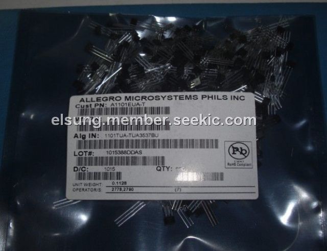 The A1101EUA-T is a Hall-effect switch. It is next generation replacements for the popular Allegro 312x and 314x lines of unipolar switches. The A1101EUA-T, produced with BiCMOS technology, consists of devices that feature fast power-on time and low-noise operation. Device programming is performed after packaging, to ensure increased switchpoint accuracy by eliminating offsets that can be induced by package stress. Unique Hall element geometries and lowoffset amplifiers of the A1101EUA-T help to minimize noise and to reduce the residual offset voltage normally caused by device overmolding, temperature excursions, and thermal stress.
