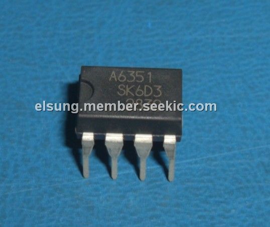 A6351 features: (1)Oscillator is provided on the monolithic control IC with adopting On-Chip-Trimming technology.; (2)Small temperature characteristics variation by adopting a comparator to compensate for temperature on the control part.; (3)Low start-up circuit current (50uA max); (4)Built-in Active Low-Pass Filter for stabilizing the operation in case of light load; (5)Avalanche energy guaranteed MOSFET with high VDSS; (6)The built-in power MOSFET simplifies the surge absorption circuit since the MOSFET guarantees the avalanche energy.; (7)No VDSS de-rating is required.; (8)Built-in constant voltage drive circuit; (9)Various kinds of protection functions; (10)Pulse-by-pulse Overcurrent Protection (OCP); (11)Overvoltage Protection with latch mode (OVP); (12)Thermal Shutdown with latch mode (TSD).