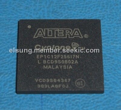 EP1C12F256I7N features: (1)2,910 to 20,060 LEs; (2)Up to 294,912 RAM bits (36,864 bytes); (3)Supports configuration through low-cost serial configuration device; (4)Support for LVTTL, LVCMOS, SSTL-2, and SSTL-3 I/O standards; (5)Support for 66- and 33-MHz, 64- and 32-bit PCI standard; (6)High-speed (640 Mbps) LVDS I/O support; (7)Low-speed (311 Mbps) LVDS I/O support; (8)311-Mbps RSDS I/O support; (9)Up to two PLLs per device provide clock multiplication and phase shifting; (10)Up to eight global clock lines with six clock resources available per logic array block (LAB) row; (11)Support for external memory, including DDR SDRAM (133MHz), FCRAM, and single data rate (SDR) SDRAM; (12)Support for multiple intellectual property (IP) cores, including AlteraR MegaCoreR functions and Altera Megafunctions Partners Program (AMPPSM) megafunctions.