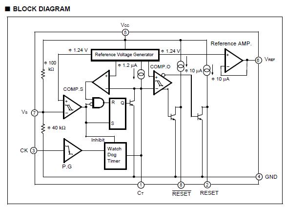 MB3773 features: (1)Precision voltage detection (VS = 4.2 V ± 2.5 %); (2)Detection threshold voltage has hysteresis function; (3)Low voltage output for reset signal (VCC = 0.8 V Typ); (4)Precision reference voltage output (VR = 1.245 V ± 1.5%); (5)With built-in watchdog timer of edge trigger input; (6)External parts are few.(1 piece in capacity); (7)The reset signal outputs the positive and negative both theories reason.