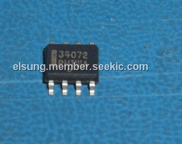 MC34072DR2G features: (1)Wide Bandwidth: 4.5 MHz; (2)High Slew Rate: 13 V/μs; (3)Fast Settling Time: 1.1 μs to 0.1%; (4)Wide Single Supply Operation: 3.0 V to 44 V; (5)Wide Input Common Mode Voltage Range: Includes Ground (VEE); (6)Low Input Offset Voltage: 3.0 mV Maximum (A Suffix); (7)Large Output Voltage Swing: -14.7 V to +14 V (with ±15 V Supplies); (8)Large Capacitance Drive Capability: 0 pF to 10,000 pF; (9)Low Total Harmonic Distortion: 0.02%; (10)Excellent Phase Margin: 60°; (11)Excellent Gain Margin: 12 dB; (12)Output Short Circuit Protection; (13)ESD Diodes/Clamps Provide Input Protection for Dual and Quad; (14)Pb?Free Packages are Available.