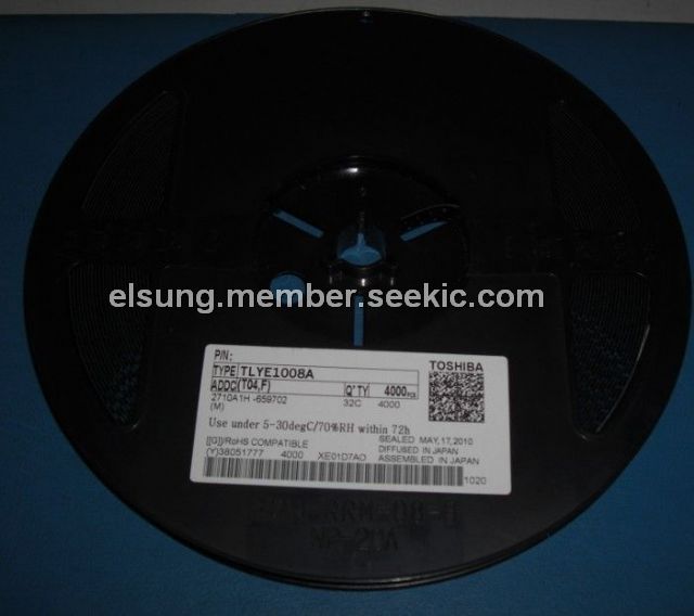 TLYE1008A features: (1)16×0.8×0.6mm; (2)InGaAlP LED; (3)it can be manufactured high-luminosity of equipment or reduce of electric power consumption by change in the high luminosity LED from general-luminosity one; (4)colors: red, orange, yellow, pure yellow, green, pure green; (5)since the products are only 0.6mm thick, they are suitable for use in thin equipment; (6)can be mounted using surface mounter; (7)reflow soldering is possilbe; (8)standard embossed taping 4mm pitch: To4.